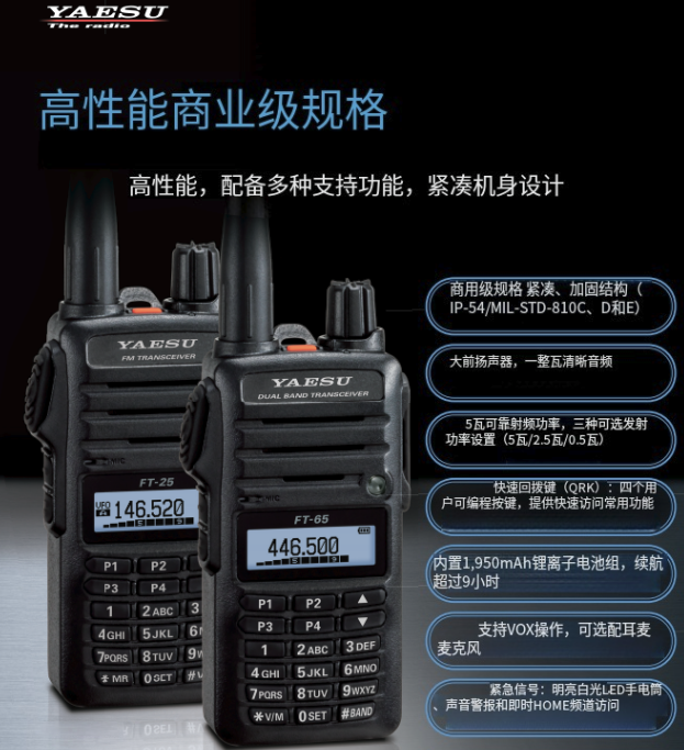手持对讲机 车载台 中继台 配件 八重洲FM双频段对讲机 FT-65R 适用行业 其他 产品简介 紧凑、响亮、操作简便, 小巧坚固的机身,易于使用且性价比极高 144/430MHz 双频 FM 收发器 FT-65 在线咨询返回上级 上一个:已经是第一个 下一个:YAESU 八重洲对讲机 FT-60R 产品介绍 规格参数 在线留言 如您对产品有任何问题,请留言给我们 提交